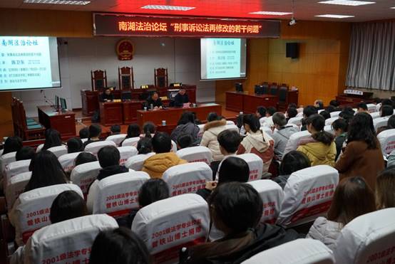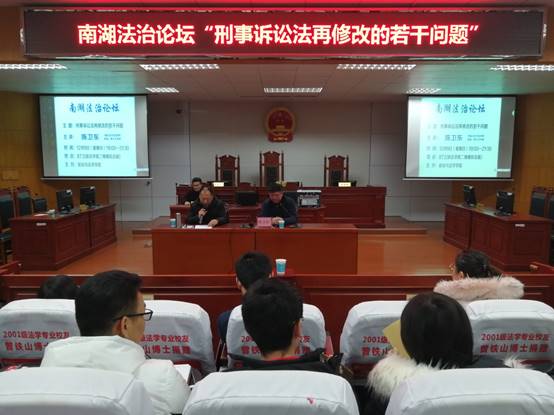 12月9日晚,中国人民大学法学院博士生导师陈卫东教授莅临我院,在学院模拟法庭进行了题为《刑事诉讼法再修改的若干问题》的学术讲座,君山区法院院长陈勇、法官李立宏、许燕,副院长彭江辉、周四丁,院长助理尹晓闻以及我院法学专业部分师生参与聆听此次讲座。讲座由我院党总支书记陈建军教授主持。