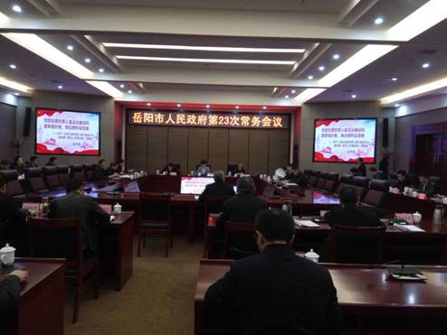 2018年12月21日上午,岳阳市政府在国际会展中心召开了第23次常务会议。为进一步推进我市法治建设,认真贯彻落实《党政主要负责人履行推进法治建设第一责任人职责规定》(以下简称“《规定》”),会议特邀湖南理工学院政法学院左平良教授就“党政主要负责人履行推进法治建设第一责任职责规定”做专题讲座。市直各单位主要负责同志约30余人聆听了讲座。会议由李爱武市长主持并讲话。