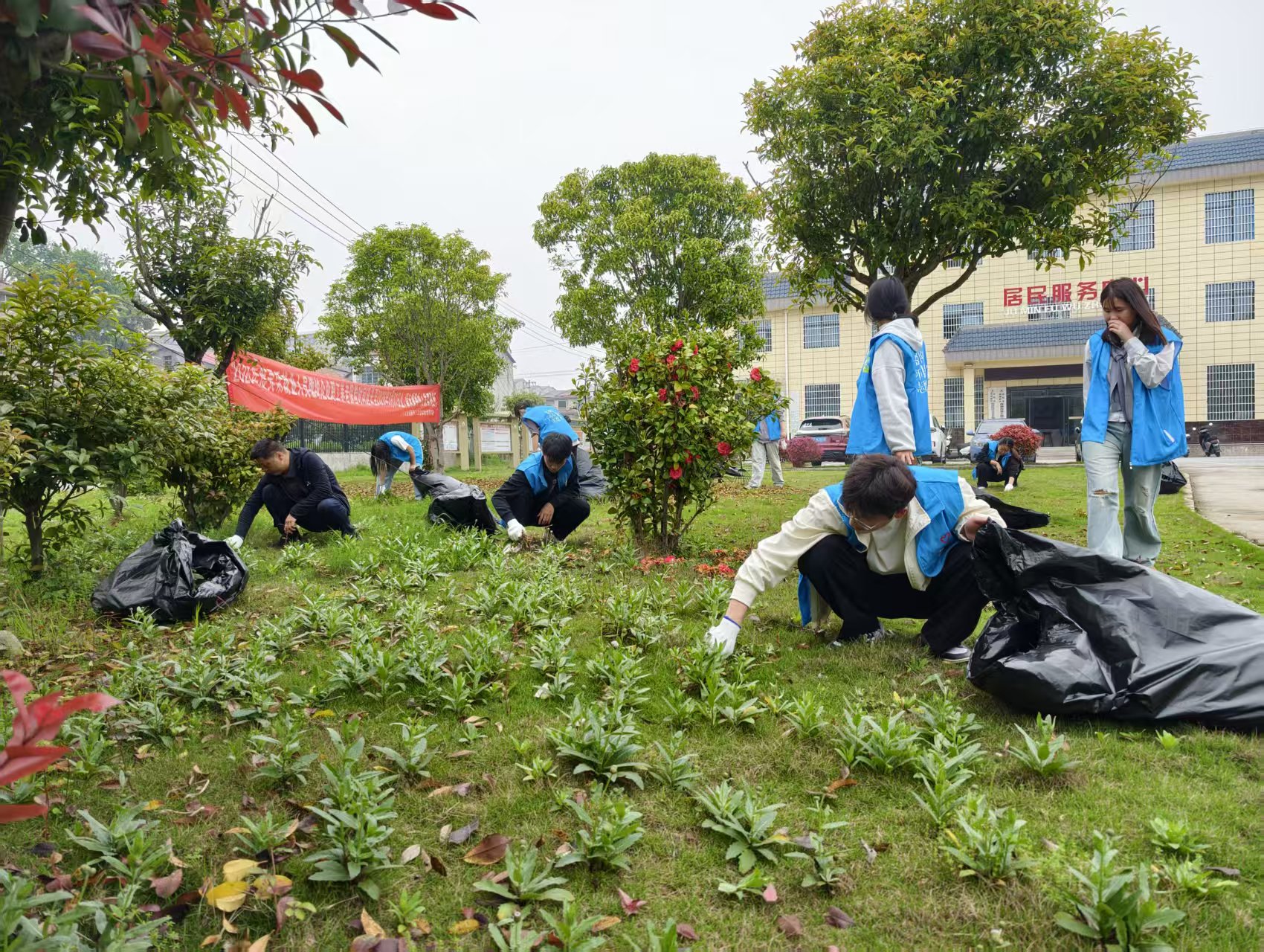 社区的工作人员、党员志愿者、居民代表及湖南理工大学法学院师生志愿者在长檀社区居委会门口集合。简短的动员后,志愿者们分组领取扫帚、垃圾夹、铲刀等工具,奔赴前头屋、大坡里、老屋场、冲天坡、檀树巷、雨鼎巷六个责任区域。