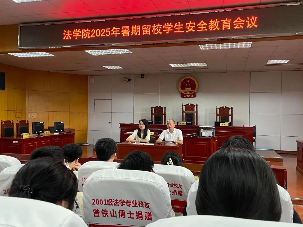 为确保本次暑假留校同学的安全,法学院已建立“老师-学生负责人-寝室长”三级联动机制,并通过定期巡查、随机抽查等方式确保制度落实,为留校学生营造安全有序的学习生活环境。会议最后,学院向全体留校学生发出倡议:安全无小事,防患于未然。希望同学们珍惜暑期留校学习时光,在追求学习进步的同时,时刻绷紧安全之弦,自觉遵守管理规定,主动配合学院工作,以高度的责任感为个人成长护航,为校园安全助力。学院也将持续关注留校学生动态,全力做好服务保障,让每一位学子都能度过一个充实、平安、温暖的暑假。(撰稿:陈思语;一审:周薇;二审:张陈武;三审:薛静)