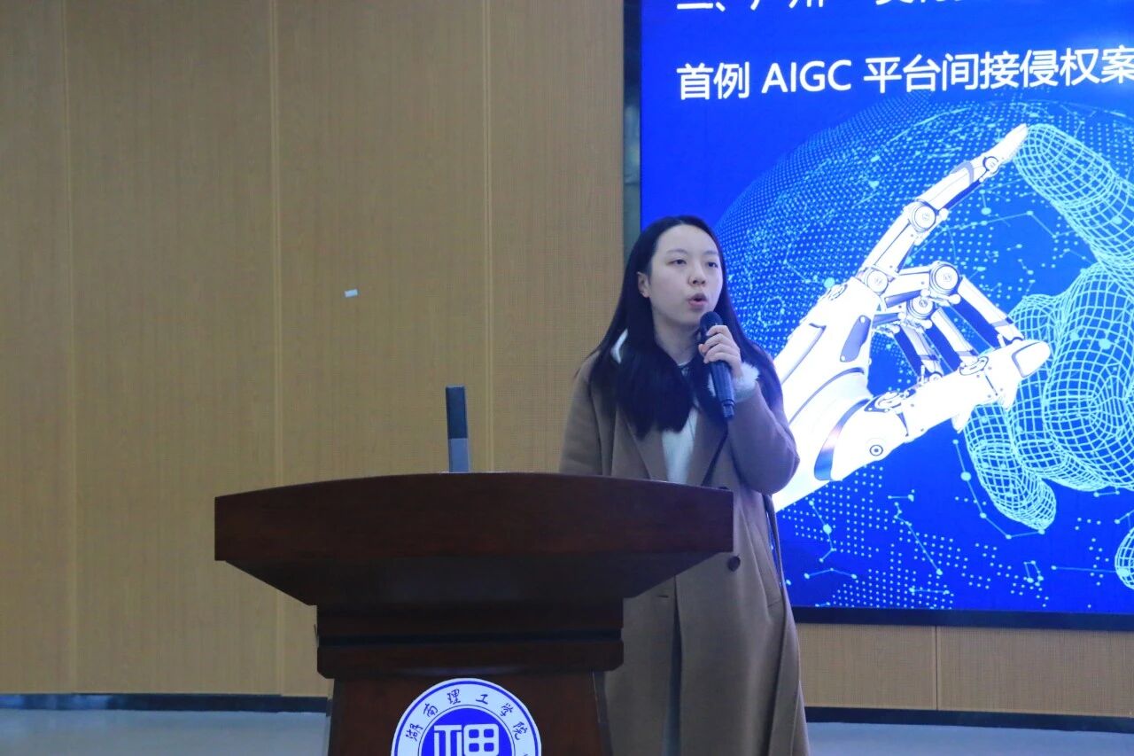 在宣讲展示环节,研究生刘雨琪围绕“AI大模型训练数据的版权风险与规制研究”进行主题汇报,其流畅的表达、生动的案例以及沉稳的台风,赢得了现场评委的一致好评,最终荣获“优秀宣讲人”一等奖。