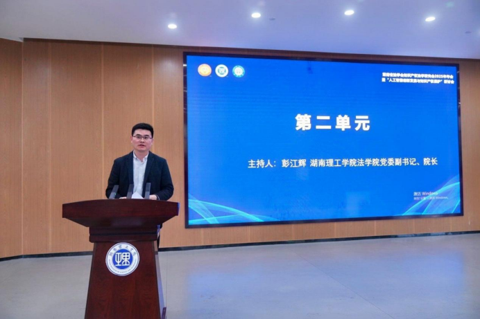 本次会议以“人工智能创新发展与知识产权保护”为核心议题,构建了全方位、多维度的研讨体系。主旨发言环节,6位行业权威专家分别从多角度剖析核心问题、分享前沿观点,为与会者提供了高水平的思想盛宴。分论坛阶段设置学术论坛、实务论坛、青年论坛三大论坛共六个场次,围绕热点难点问题,开展了深入细致的交流探讨,既涵盖基础理论创新,又聚焦司法实践与企业合规需求,实现了学术研究与实务应用的精准对接。湖南理工学院法学院知识产权教研室主任张舒琳老师、陈祥玲老师分别就“生成式人工智能著作权侵权适用避风港规则的困境及其完善”“美国技术出口管制背景下中国专利布局的应对策略研究”发表了观点。孟磊教授主持了实务论坛的研讨交流。