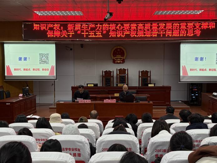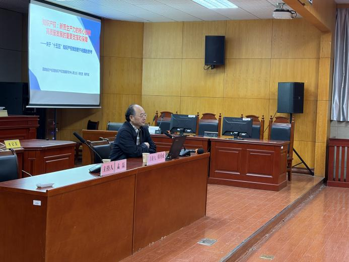 12月5日晚,国家知识产权局知识产权发展研究中心原主任、研究员韩秀成教授主讲的《知识产权:新质生产力的核心要素 高质量发展的重要支撑和保障——关于“十五五”知识产权规划若干问题的思考》专题讲座在模拟法庭顺利举行。本场讲座由法学院教授、硕士生导师孟磊主持,法学院师生代表参与,现场座无虚席,气氛热烈。