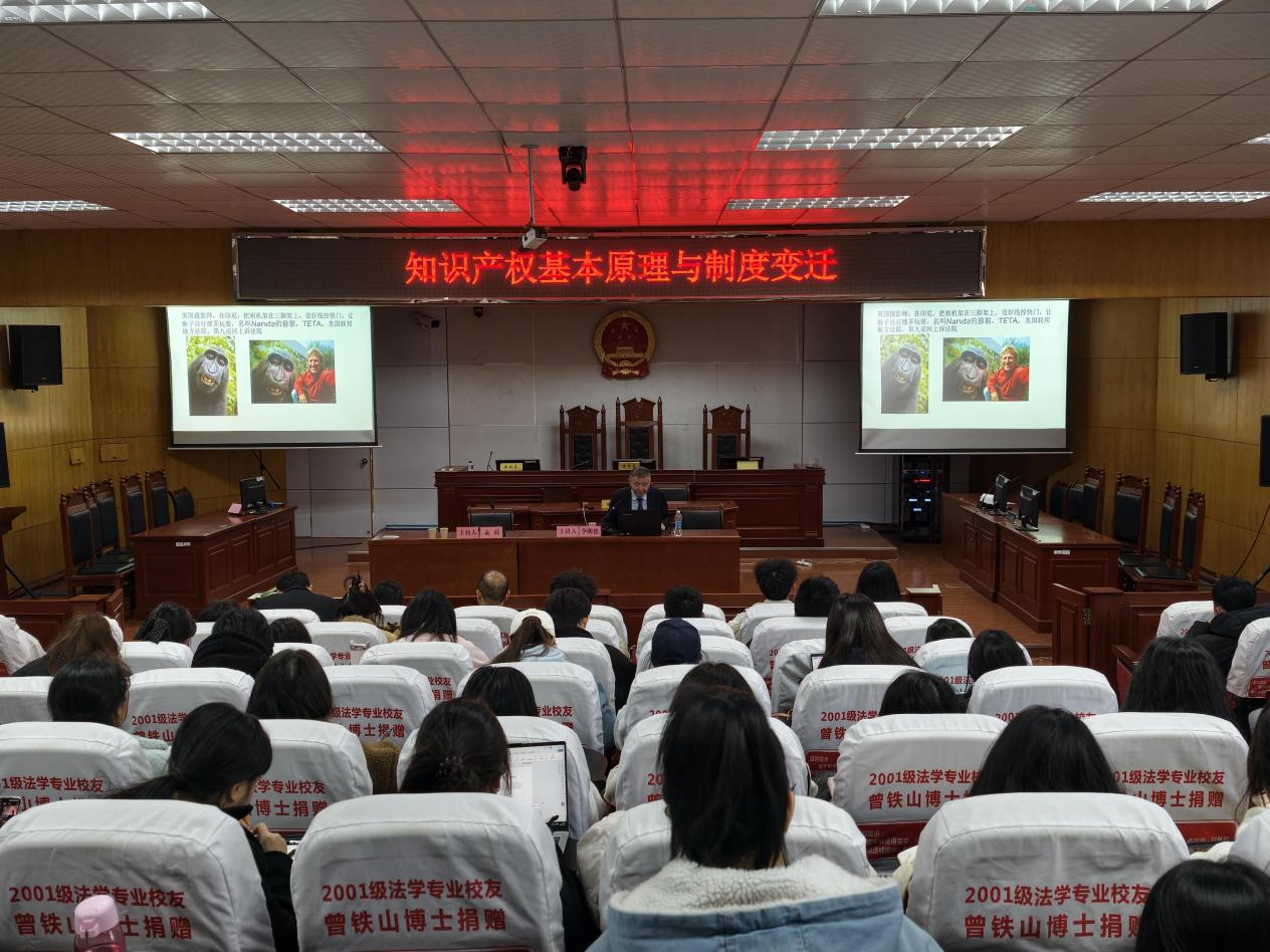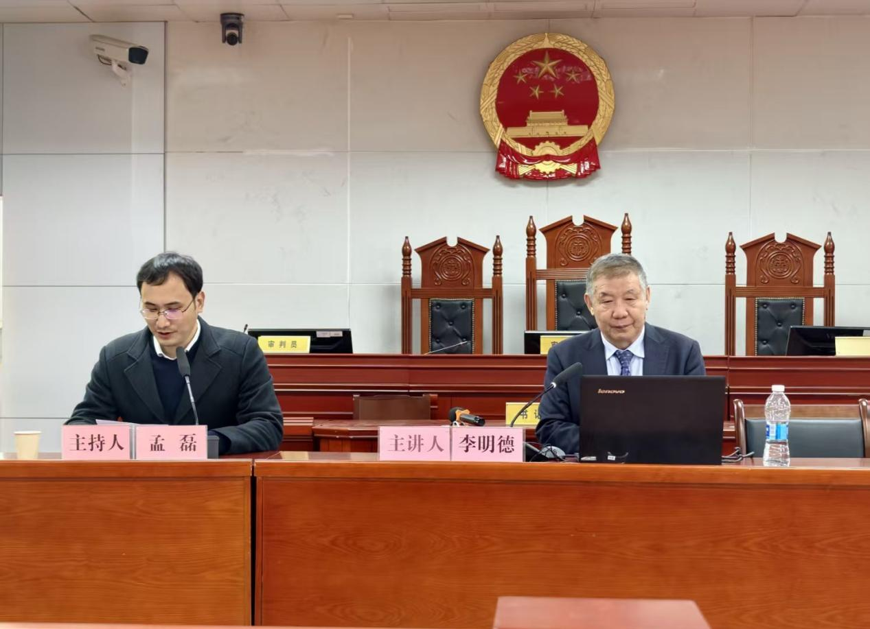 12月5日,中国社会科学院法学研究所二级研究员、中国社会科学院知识产权中心名誉主任、中国社会科学院大学法学院特聘教授李明德教授受邀来我院模拟法庭主讲“知识产权基本原理与制度变迁”专题讲座。本场讲座由法学院教授、硕士生导师孟磊主持,法学院师生代表参与。