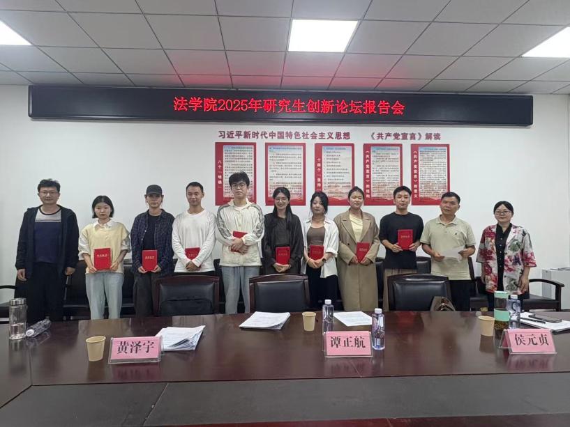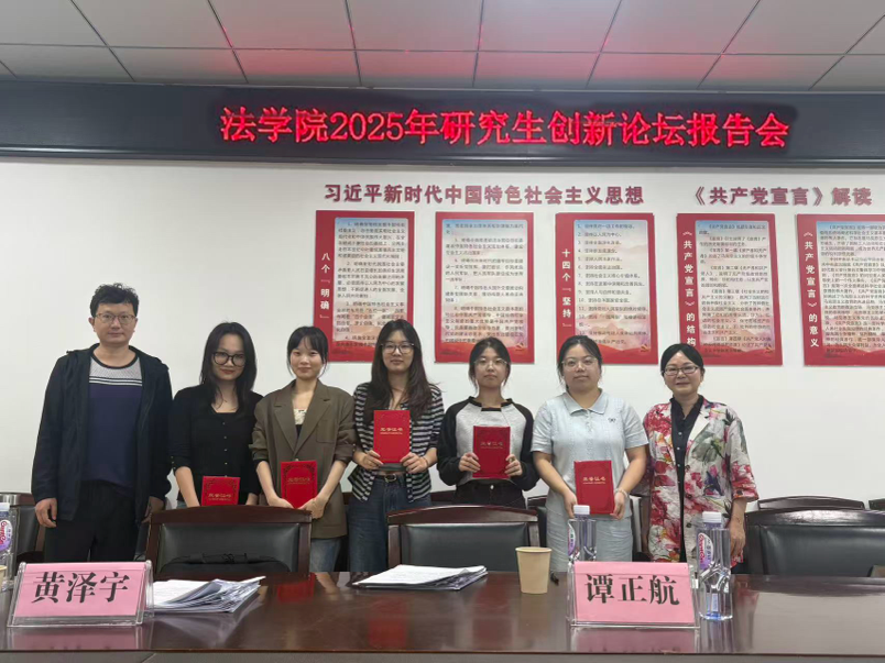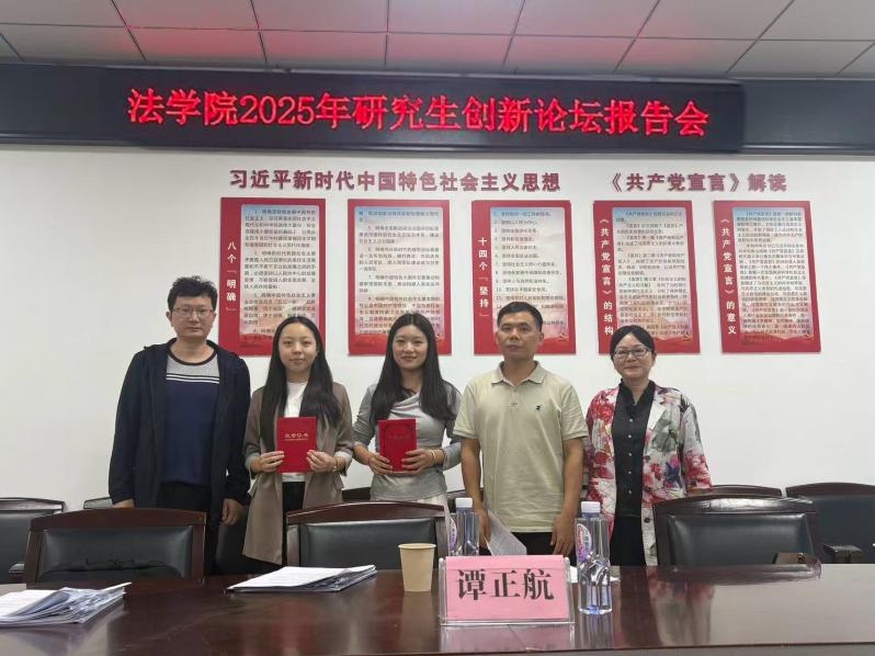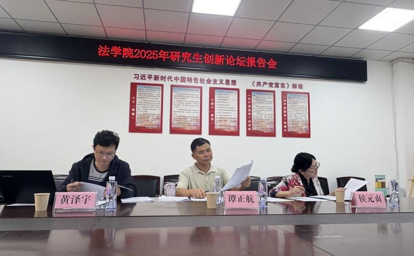 为激发研究生创新思维与科研创新活力,深化理论与实践融合,进一步提升法律硕士专业学位研究生培养质量,2025年09月27日,法学院“第六届研究生创新论坛报告会”顺利召开。本次论坛以“进一步全面深化改革、推进中国式现代化建设法治保障”为核心议题,法学院谭正航教授、侯元贞副教授,岳阳楼区人民法院黄泽宇副庭长受邀担任评委。