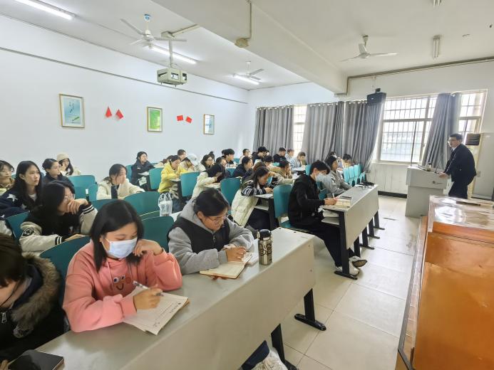 【本站讯】为深入学习贯彻习近平新时代中国特色社会主义思想,帮助入党积极分子进一步端正入党动机,11月11日14时30分于八栋8401,法学院院长彭江辉为第53期入党积极分子班讲授党课。法学院第53期入党积极分子培训班全体42名入党积极分子参加学习。