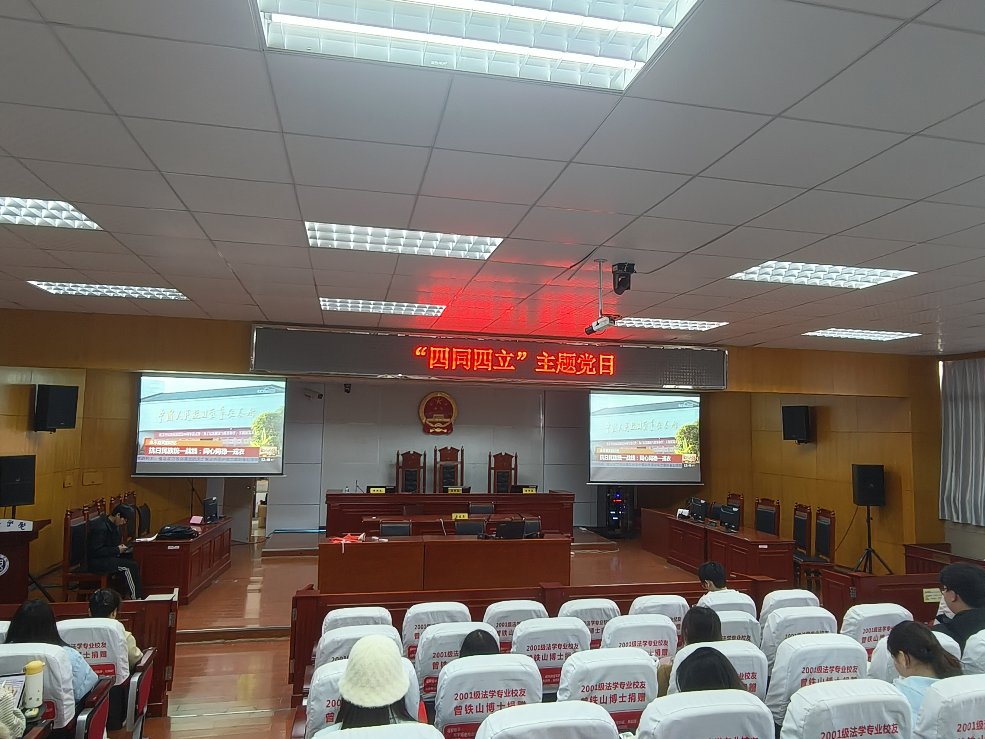 【本站讯】为学习贯彻党的统一战线工作相关精神,进一步强化政治引领、凝聚统战力量,12月9日14:00于模拟法庭,法学院党委开展“四同四立”主题党日暨“一月一课一片一实践”活动。全体师生党员、部分入党积极分子参加。
