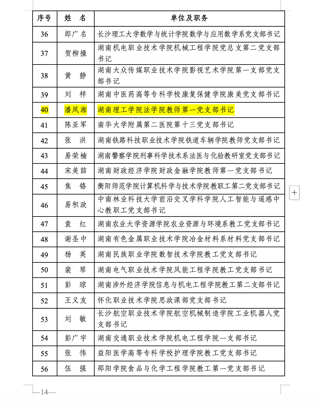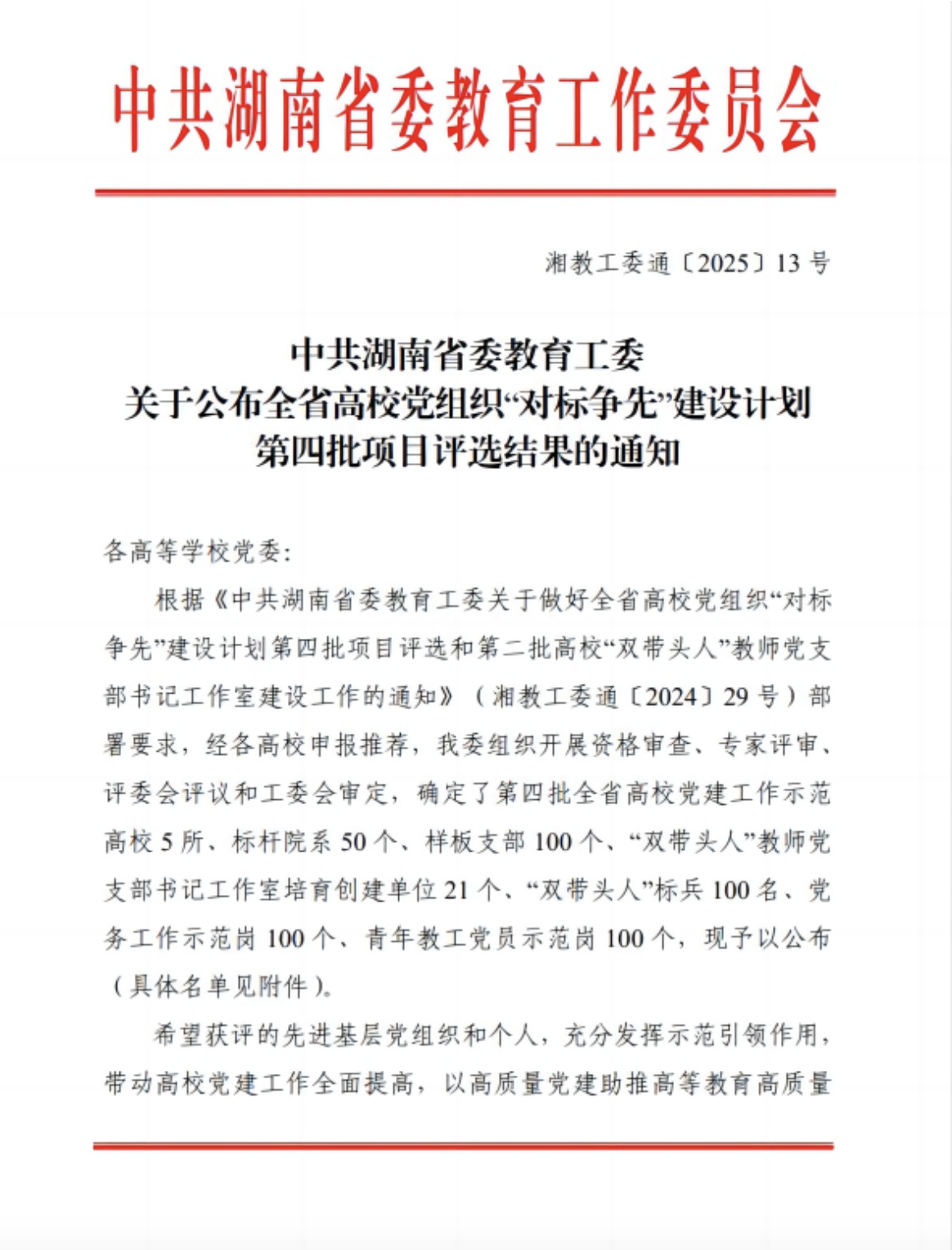 近日,湖南省教师党支部书记 “双带头人” 评选结果公布,我院潘凤湘老师凭借优异表现,获评湖南省教师党支部书记 “双带头人标兵” 称号,为我院党建工作再添荣誉。